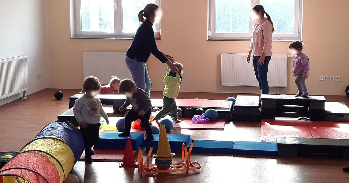 Gemeinsam mit den Eltern wird zur Musik gesungen, getanzt, geklettert, balanciert, gehüpft, gesprungen etc.